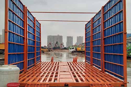 自动洗轮机利用多方位,多角度喷射出的150-300个高压水柱对工程车辆轮胎及底盘部位进行高压冲洗,从而达到将车轮及底盘彻底洗净的效果,清洁上路,冲洗机用机械自动感应式、遥控和手动三种控制,可自动完成冲洗的工作,冲洗用水可循环使用,连续工作时,仅需补充少量的水,因此可以节约大量水资源,大约50s左右可冲洗完成。本设备安装运输方便,可适用各种工地频繁转场的需要。